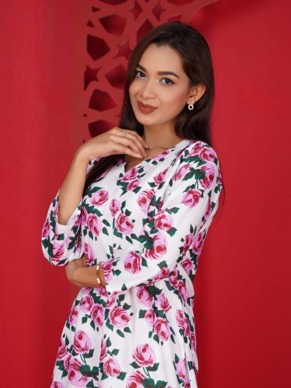 প্রিমিয়াম ফ্লোরাল ড্রেস সাদা কালার কালার কুর্তি সেট।